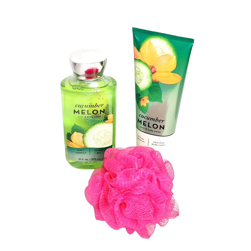 CUCUMBER MELON BATH AND BODY GIFT SET 4 PIECE GIFT SET BATH & BODY GIFT SET BODY CREAM BODY SHOWER GEL BATH FOAM 11 INCH BEAR VALENTINES GIFT SET MOTHER'S DAY GIFT SET BIRTHDAY GIFT SET WOMEN'S BODY GIFT SET CLEAR CELLO WRAPPED WITH RIBBON (COLOR MAY VARY