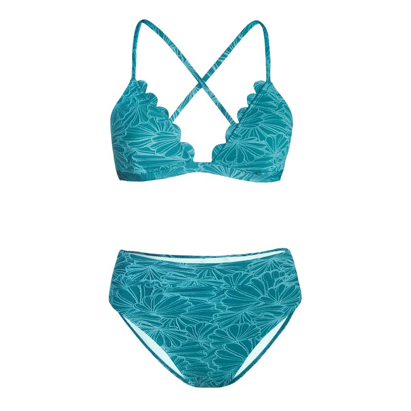 CUPSHE Bikini Set for Women Bathing Suit High Waisted Scalloped V Neck Two Pieces Swimsuit M Cyan