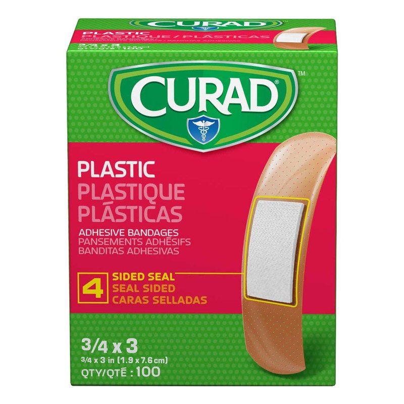 CURAD Plastic Adhesive Bandages, 3/4" x 3", Not Made from Natural Rubber Latex, Pack of 1200