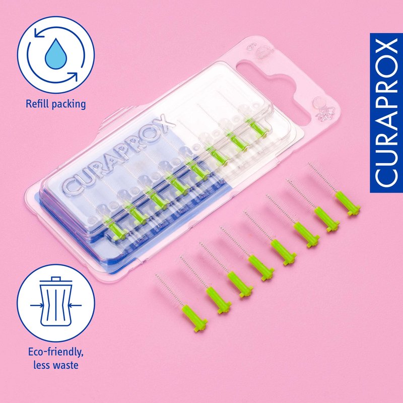 Curaprox CPS 011 Prime Refill Interdental Brushes, 8-Piece Refill Pack interdental Brushes CPS 011 Prime, 1.1 mm to 5.0 mm, Green