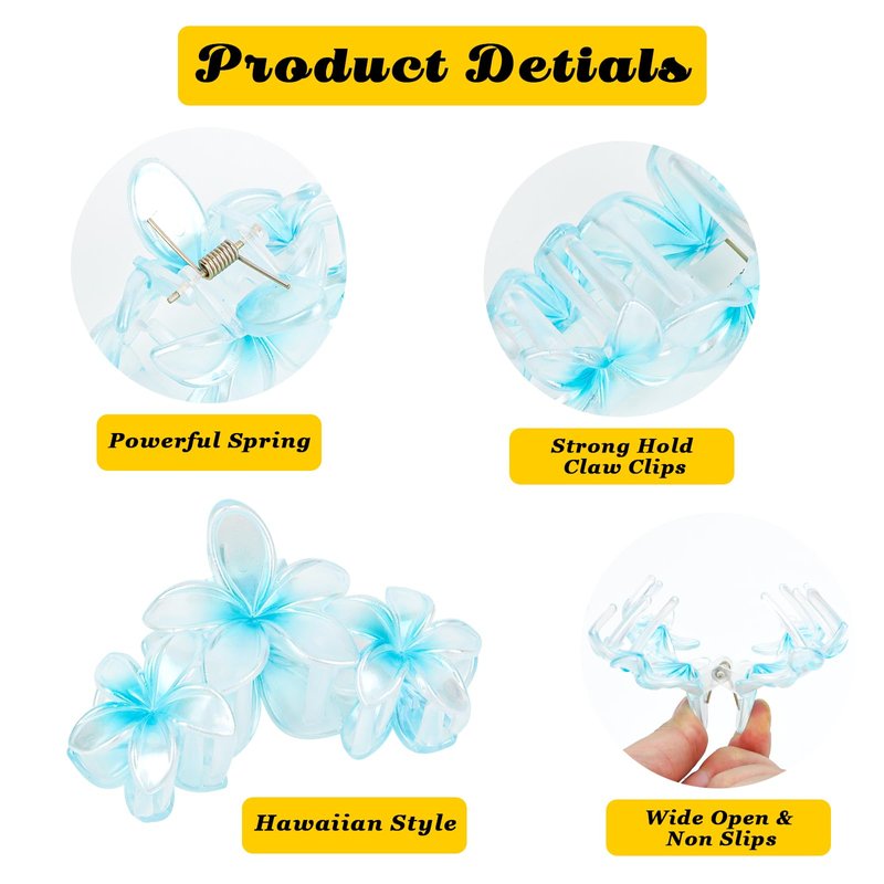 - 🌺FASHION FLOWER DESIGN🌺: Our hair claw clips are designed with a unique hawaiian flower shape and there are 6 colors for you to choose. They can not only brighten up your everyday outfit, but also give you a hot and stylish summer style.