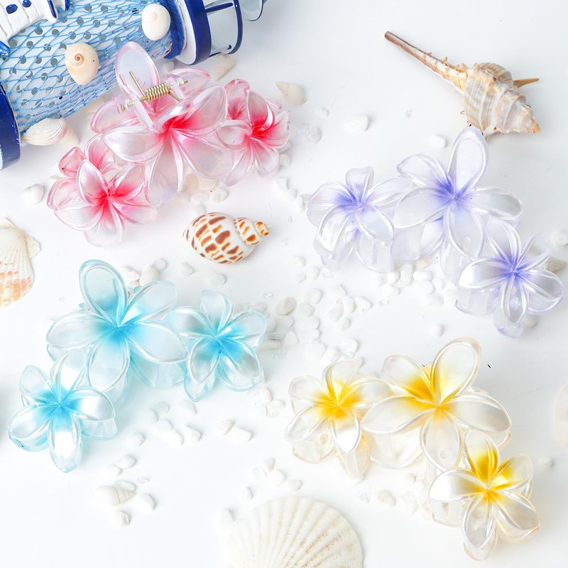 CURASA 4Pcs Flower Claw Clips Hawaiian Flower Hair Clips for Women Girls Plumeria Hair Clip Hibiscus Hair Claw Clips for Thick Hair Flower Claw Clip Pearlescent Summer Hair Accessories for Women