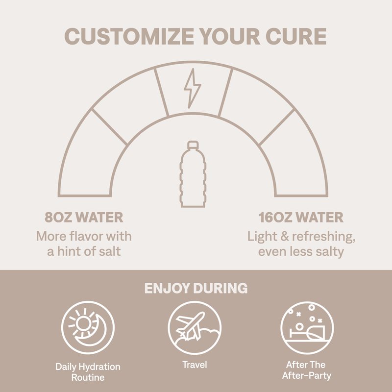 - BACKED BY SCIENCE: We can’t take all the credit for our formula; It was the World Health Organization who discovered that a balanced ratio of electrolytes and glucose allows water and essential minerals to be pulled directly into your system; Basically, a hydration superhighway; We pack that same hydrating formula into each pack of Cure