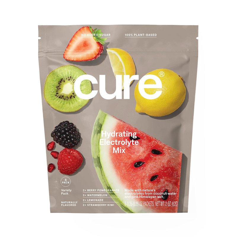 Cure is an electrolyte powder made with real ingredients like coconut water and pink Himalayan salt. Each pack of Cure has 4x the electrolytes of leading sports drinks, but no added sugar or artificial anything. Whether you’re recovering from this morning’s workout or last night’s happy hour, Cure gives you everything you need for optimal daily hydration and nothing more.
