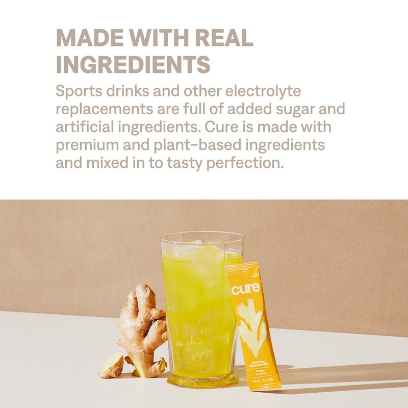 Cure Hydration | Plant-Based Electrolyte Drink Mix | No Added Sugar | Dehydration Relief Powder Made with Coconut Water | Non-GMO | Vegan | FSA & HSA | Pouch of 14 Packets - Ginger Turmeric