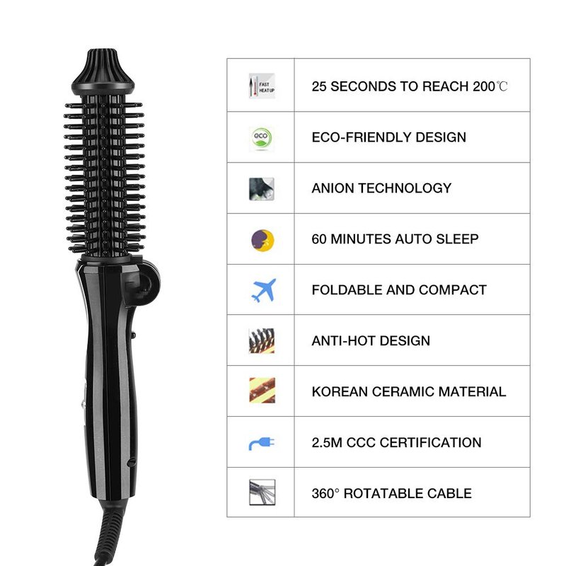 Curling Iron Foldable, Ceramic Tourmaline Anion Hair Brush Curling Iron Hair Styling Tools with Anti Scald Handle for All Hair Types (US Plug 110‑240V)
