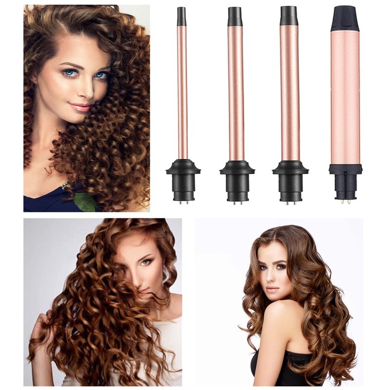 4 in 1 Interchangeable Ceramic Curling Iron Set offers 4 different size of barrels: