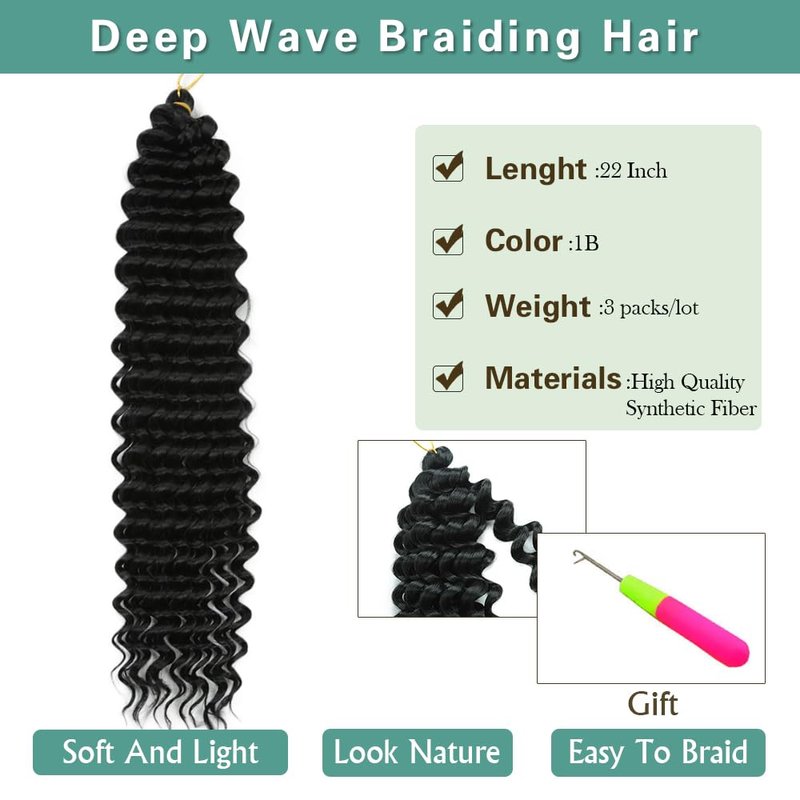 - Hair Features:The Deep Wave Crochet Hair Features Stylish Deep Wave Texture, Perfect For Boho Braid . It Is Soft, Lightweight, And Easy To Install, Allowing You To Create A Gorgeous Look Effortlessly. Perfect For Those Who Love To Experiment With Their Style