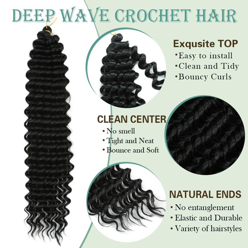 - Hair Material: Our Deep Wave Crochet Braids Hair Is Crafted From Heat Resistant Synthetic Fiber, Ensuring Durability And a Natural Look. The Wave Crochet Braids Provide a Stunning Appearance With Curly Texture That Enhance Beauty And Style.
