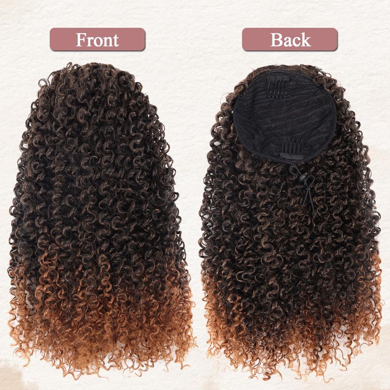 Curly Ponytail Extension for Black Women Drawstring Ponytail Hair Extensions 14'' Ombre Brown Synthetic Kinkys Curly Drawstring Ponytail for African Women