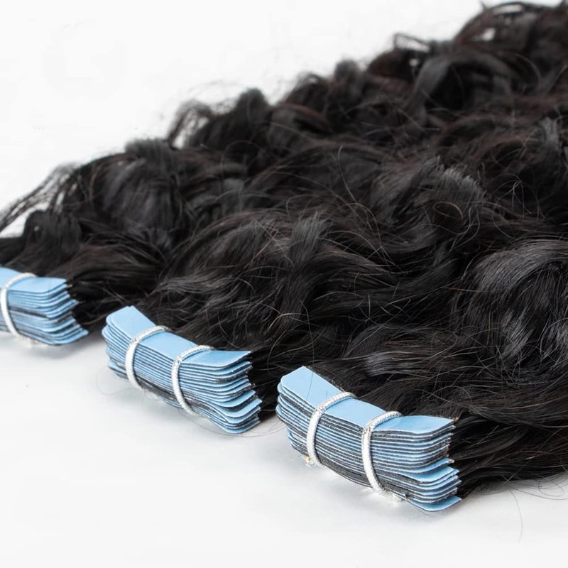 Curly Tape in Hair Extensions Human Hair Double Sided 14 Inch 20pcs 50g Brazilian Remy Hair Water Wave Tape in Hair Extensions Invisible Tape in Real Hair Skin Weft Hair Extensions for Balck Women
