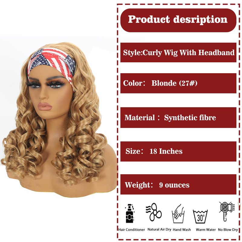 - Long curly headband wig , length: 18 inches, weight: 260g, Breathable inner mesh, comfortable to wear, hat is average size (20.5"-22.5"), three combs, two adjustable straps inside, easy to adjust, fit the head, better fix, fit most people