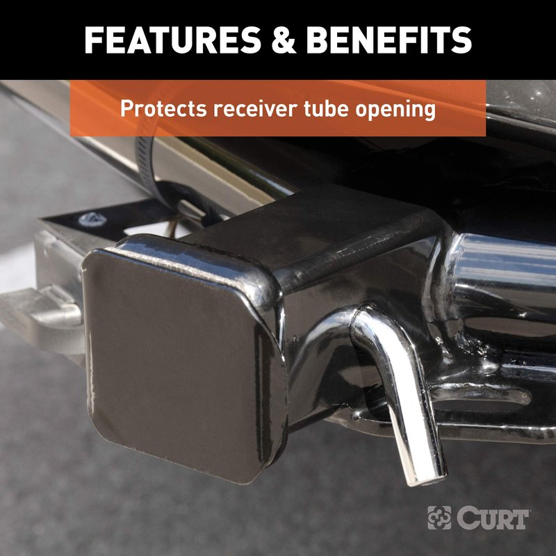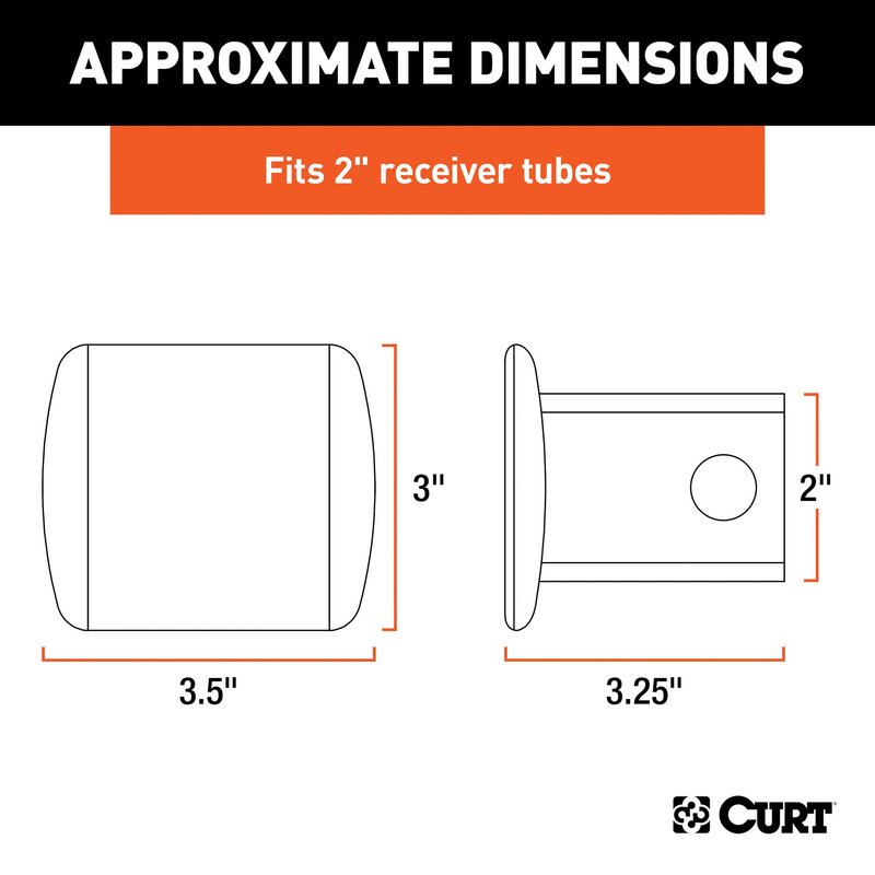 - STANDARD FIT. CURT tow hitch covers come in industry-standard sizes to fit virtually any trailer hitch receiver. This hitch cover is designed to fit a 2-inch x 2-inch receiver tube, perfect for most class 3, class 4 and class 5 hitches