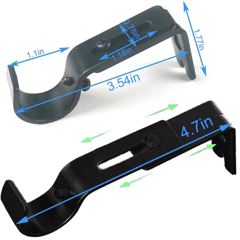- 【Universal Size of Adjustable Curtain Rod Bracket】: Adjustable bracket hooks accommodate a maximum rod diameter of 1 inch . Works with any standard 1 inch diameter rod and serves effectively in a variety of different indoor scenarios. Adjustable length: Extends from 3.6 to 4.7 inches out from the wall.