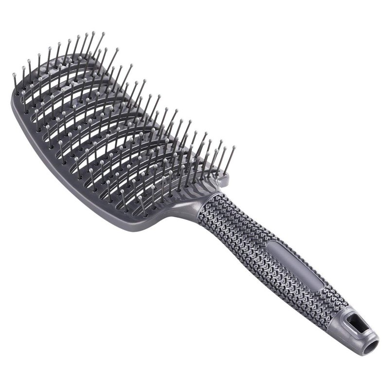 - Large blow drying vent curved hair brush in grey color.