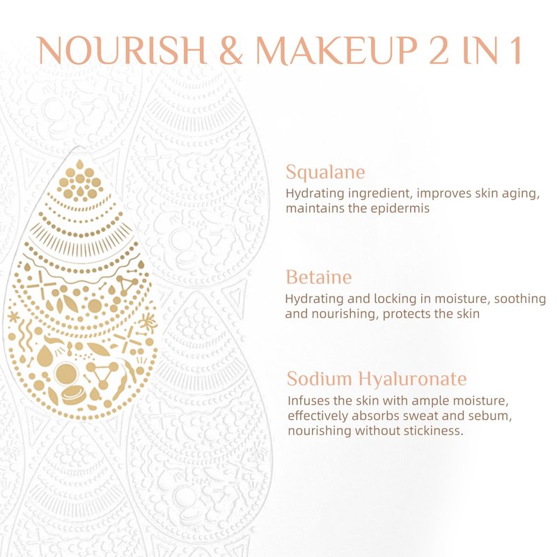 - Hydrating and Nourishing: Cushion foundations are formulated with rich hydrating ingredients like hyaluronic acid,squalane and botanical extracts that deeply moisturize and nourish the skin. These ingredients help lock in essential moisture, ensuring the skin remains hydrated for longer periods. By improving skin texture, they can also help reduce the visibility of fine lines and wrinkles, leading to a more youthful, revitalized, and radiant skin