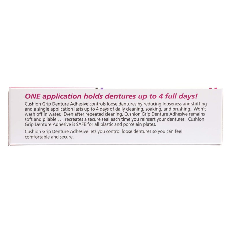 Cushion Grip is great to secure upper and lower dentures, and partials, as it offers a perfect fit and fills in any gaps between your gums and teeth. Retaining the soft reline quality for a longer duration than any other denture adhesive, You'll Definitely Save Money in the Long Run!