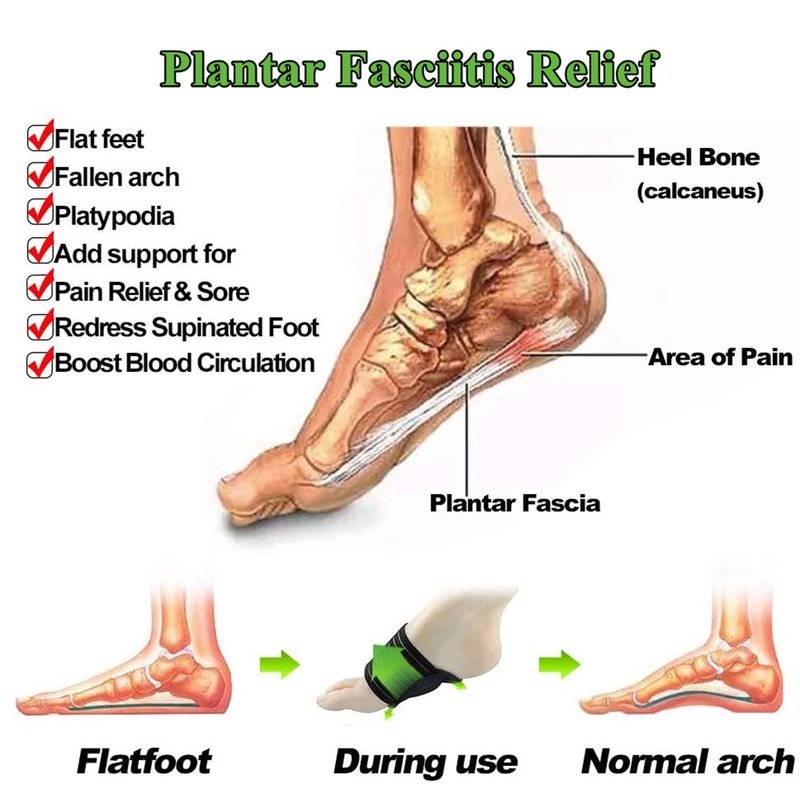 - Professionally Designed Comfort - Our cushioned foot arch supports have been designed to provide comprehensive & exceptional support to the plantar fascia band, to alleviate the pain commonly associated with plantar fasciitis. Our footpad offers compression and support, helping to relieve pain in your heels, arches, balls of the feet, knees, hips, and lower back.