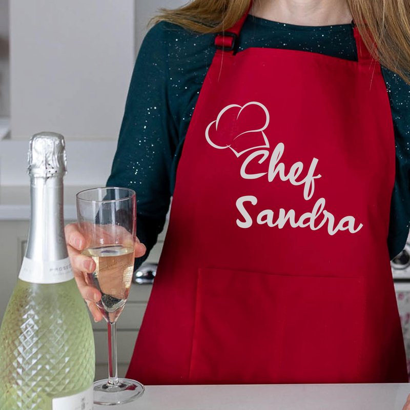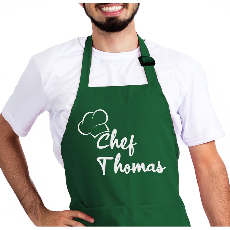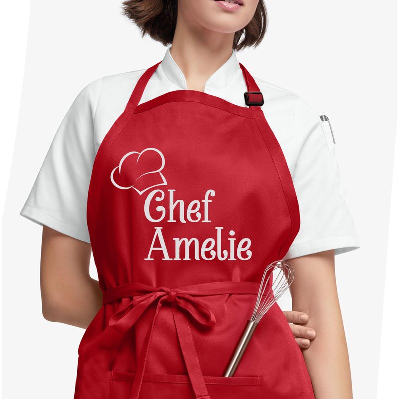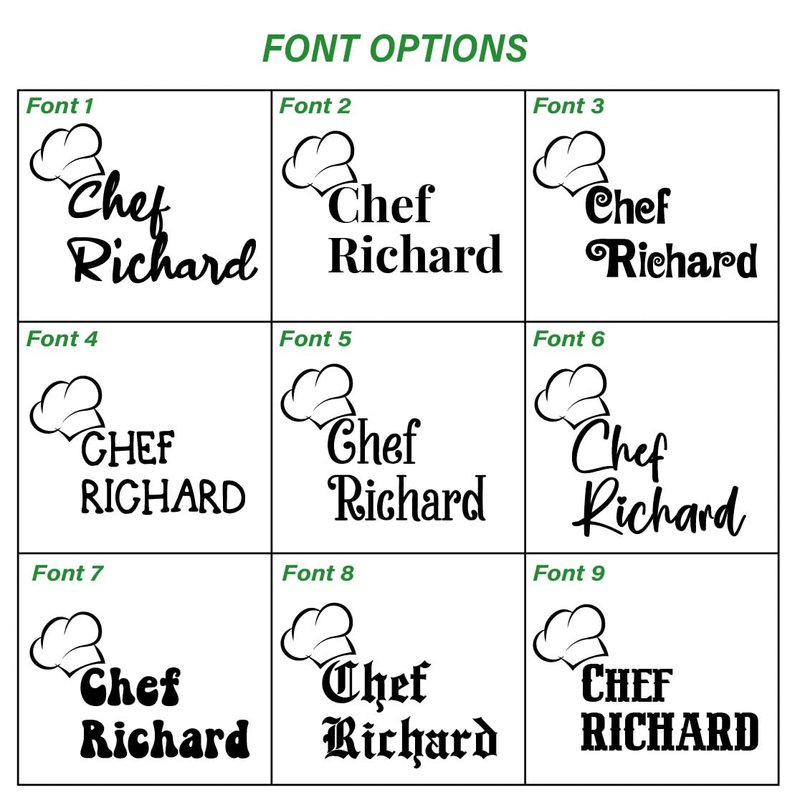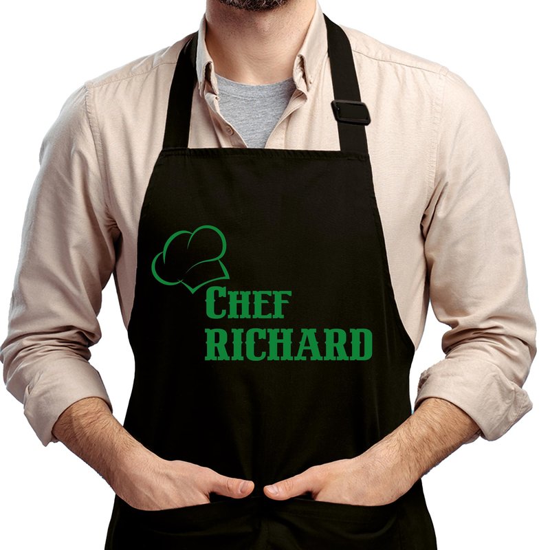 PERSONALIZATION STEPS: 1- Click on ''Customize & Add to Cart''. 2- Choose the color of your black or red apron. 3- Type the name you want to customize. 4- Select the text color. 5-Add to cart