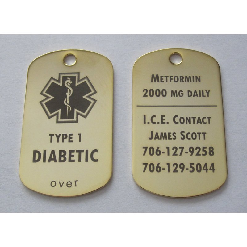 Custom Engraved Diabetes Diabetic Medical Alert Tag Pendant Necklace in Gold or Silver (Gold) - Free Personalization