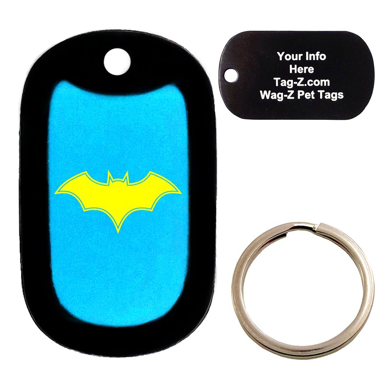 Custom Engraved Pet Tag Bat - Cyan Blue - Dog Tag - Tag-Z Wag-Z