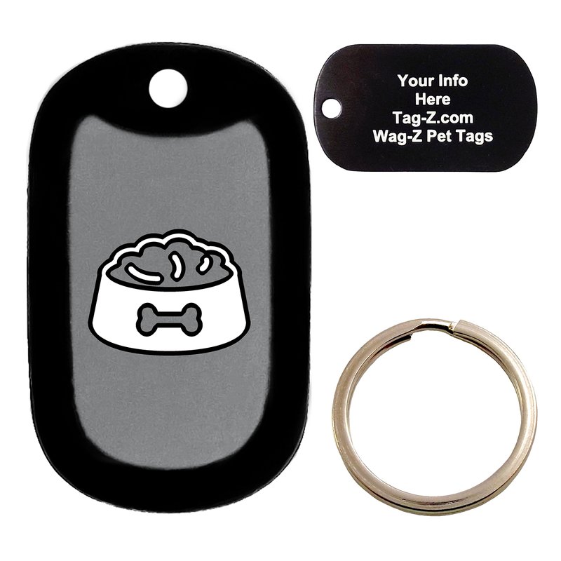 Custom Engraved Pet Tag - Dog Food Bowl with Bone - Gray - Dog Tag - Tag-Z Wag-Z