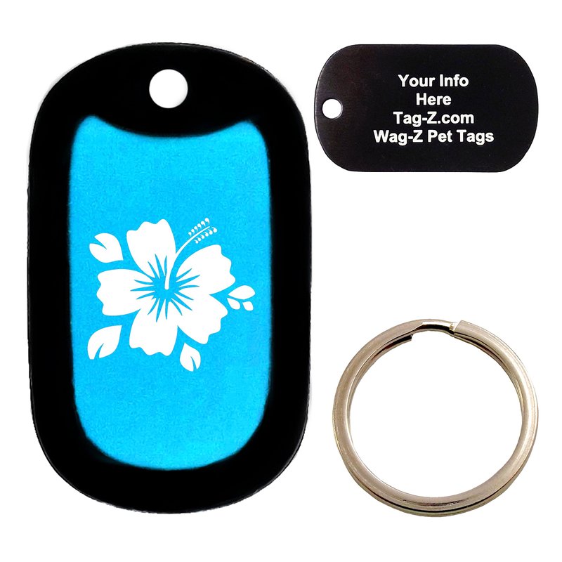 Custom Engraved Pet Tag - Hibiscus - Cyan Blue - Dog Tag - Tag-Z Wag-Z
