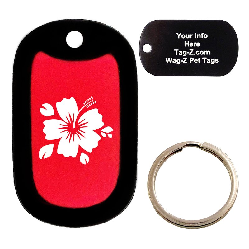 Custom Engraved Pet Tag - Hibiscus - Red - Dog Tag - Tag-Z Wag-Z