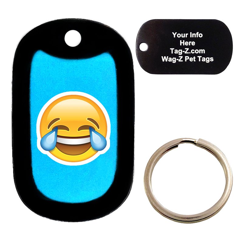 Custom Engraved Pet Tag - laughing tears emoji cyan - Dog Tag - Tag-Z Wag-Z