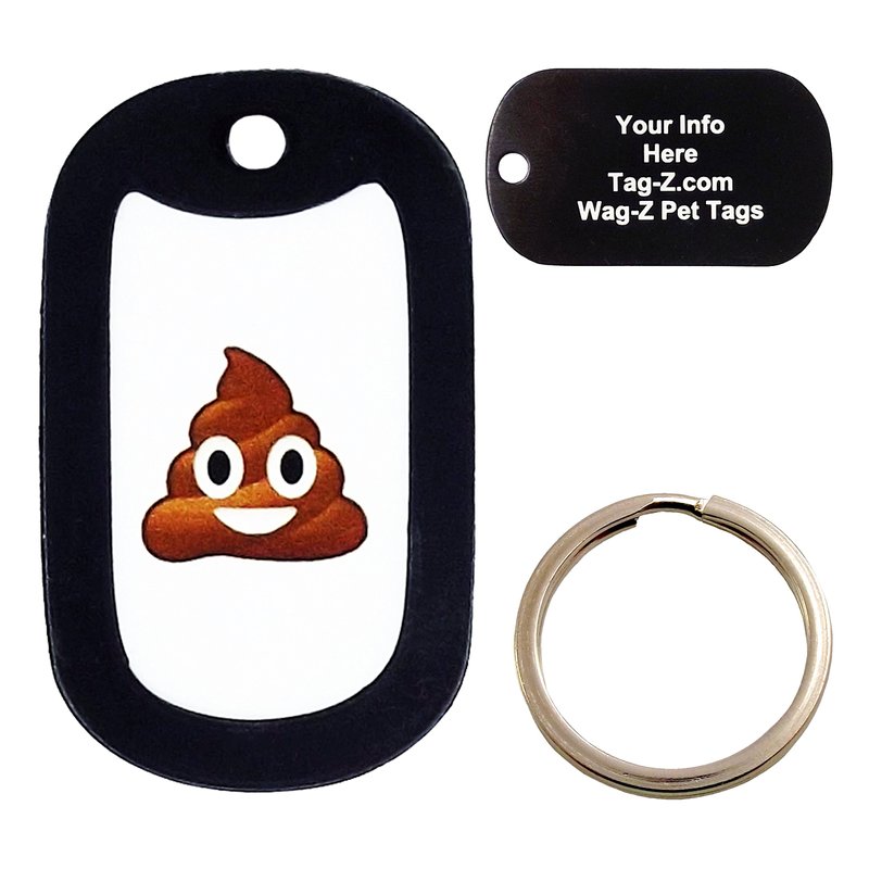 Custom Engraved Pet Tag - Poo Emoji- White - Dog Tag - Tag-Z Wag-Z
