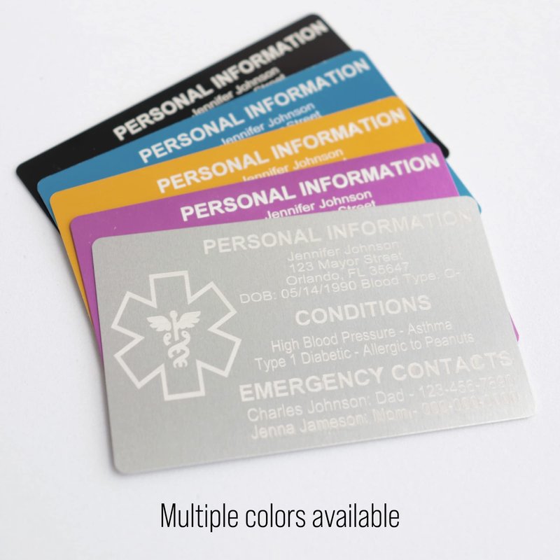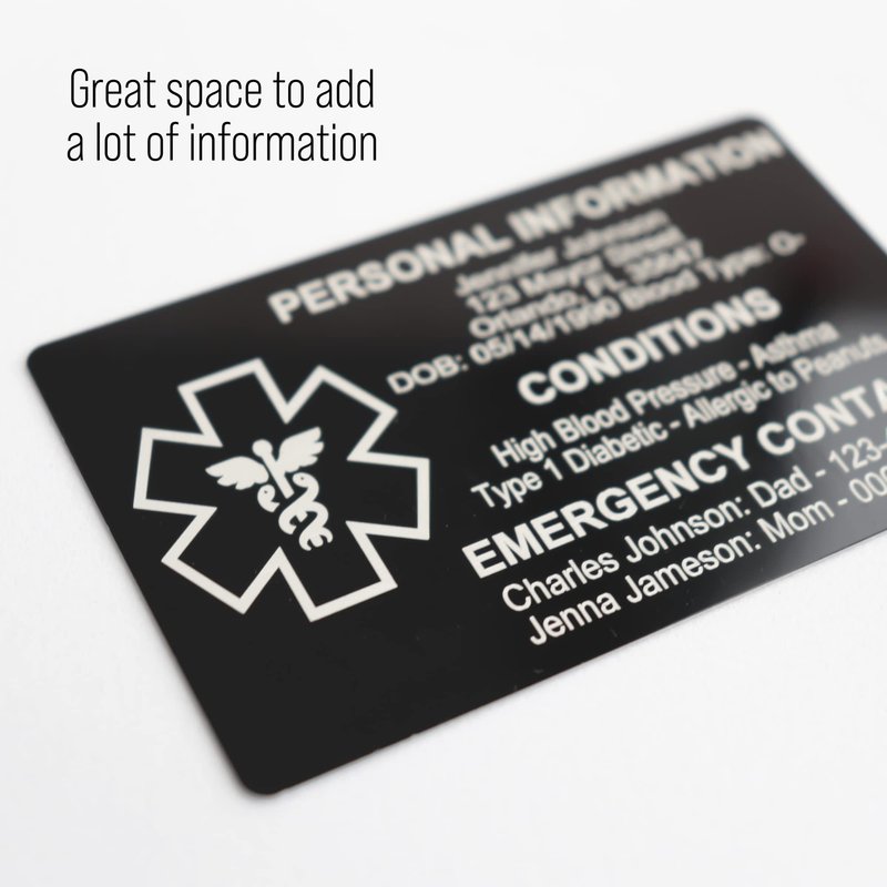 Custom Medical ID Card for Wallet, Aluminum Free Engraving Emergency Contact Card, Personalized Metal Awareness Alert ICE Card for Medic Conditions, Allergies & Identification