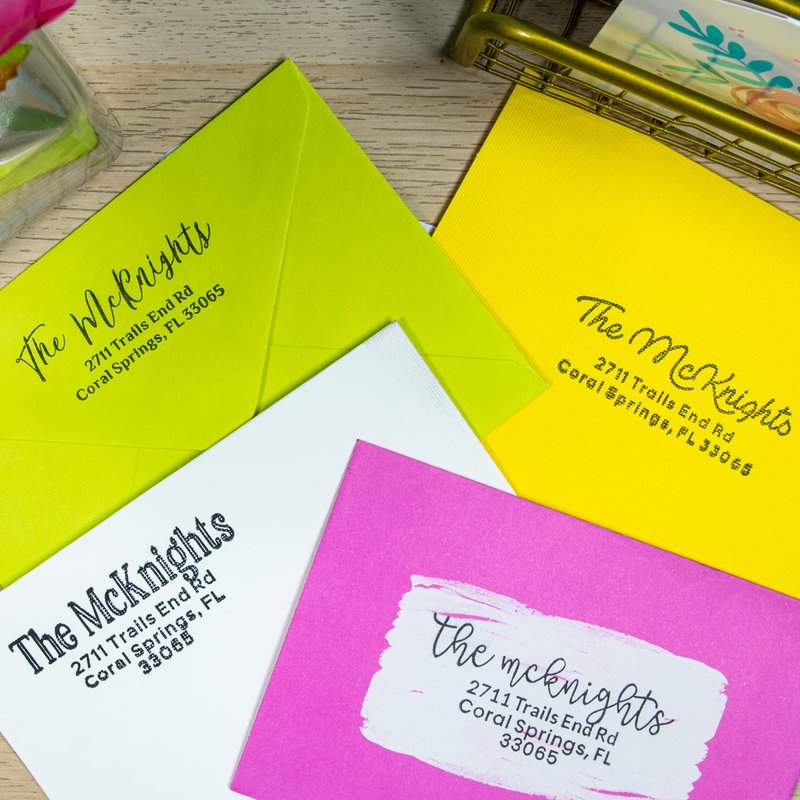 - Self-inking return address stamp customized with your name and address in a variety of designs