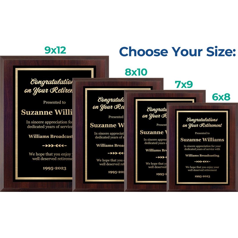 Customized Retirement Plaque Award – Laser Engraved Personalized Gift – Choose Your Size – Customize Now! (9x12)