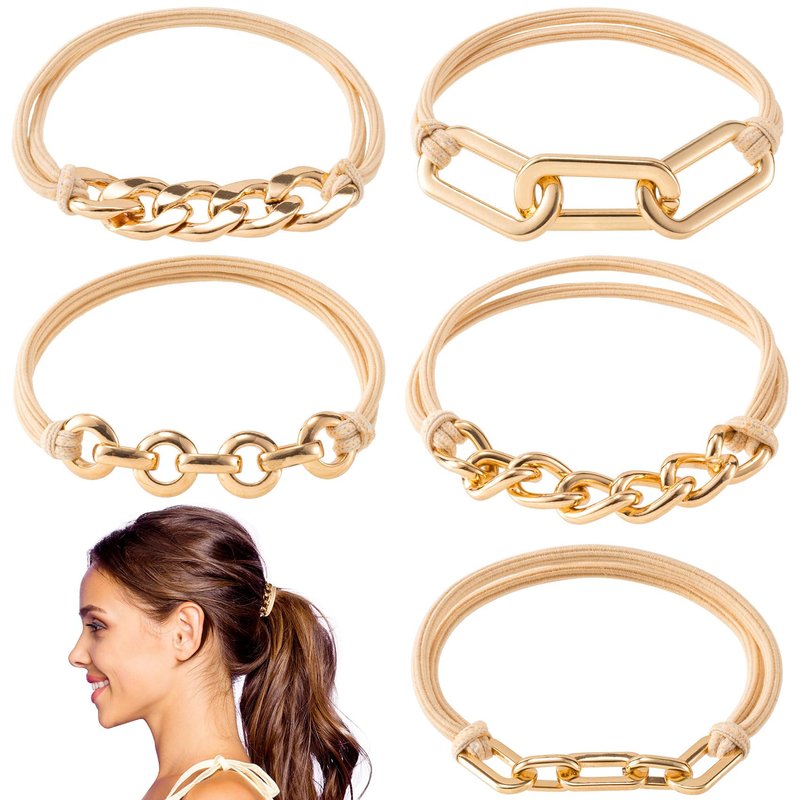 5pcs Gold Bracelet Hair Ties