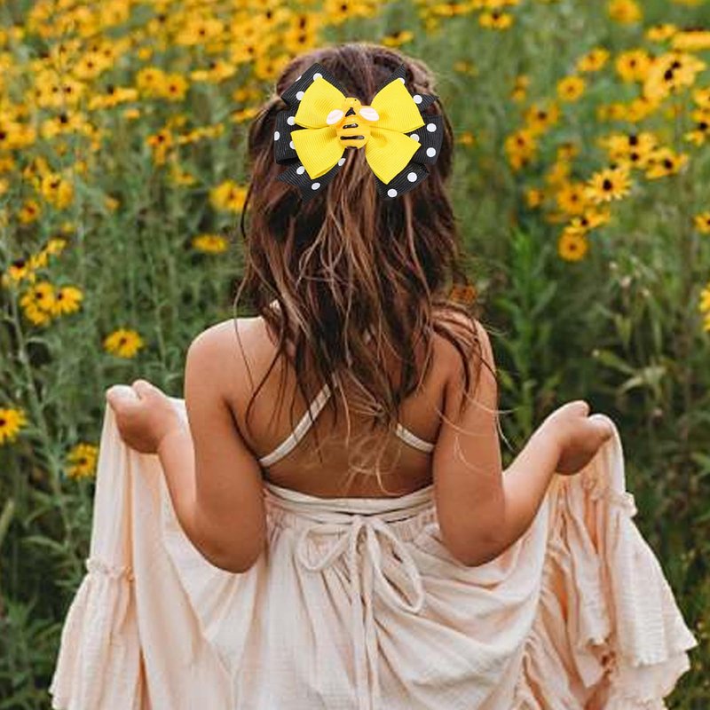 - ๐๐ปCute Bows for Girls:These bee ribbon bows for girls with high quality fabrics, girls hair bows were attached alligator hair clips by hot glued steady,all hair bows clips for girls will be not fell off whatever your hair is thick or thin.