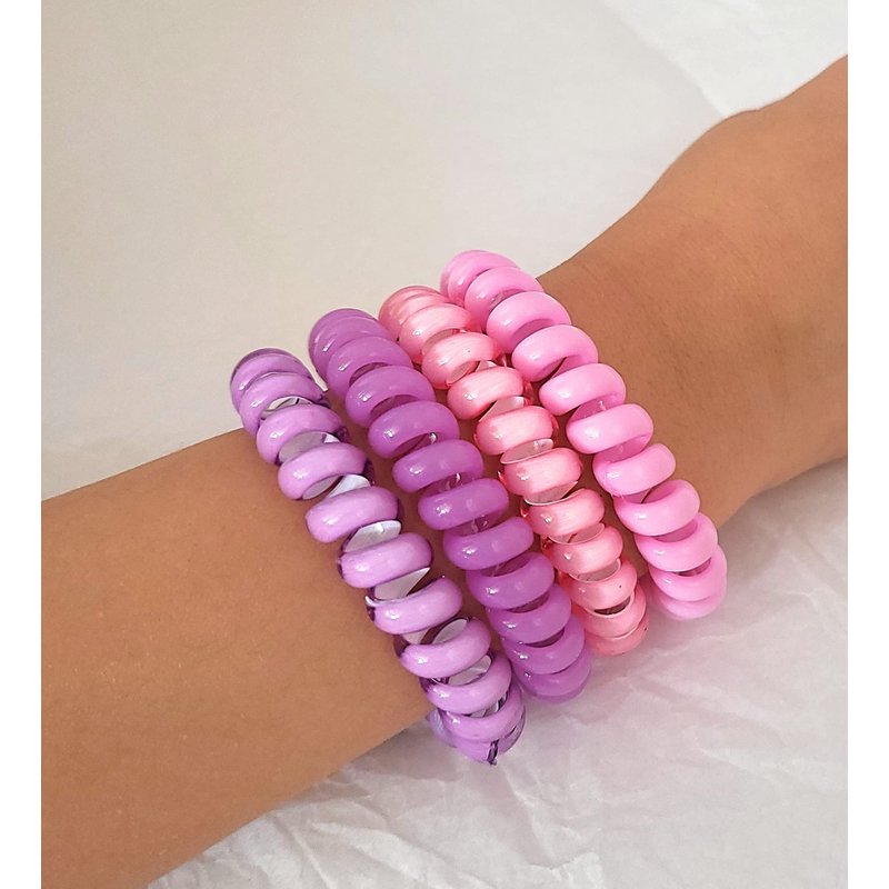 ★ The spiral design, smooth surface of the phone cord hairband prevent hair from breaking and tangling when the hairband is taken off and spread the"pressure" of the hair rubber band to a larger surface area, helps minimize the swelling caused by the hairband on the styling hair and prevent headaches.★ Made of high-quality TPU material - soft and comfortable. When not in use, the tie can be stretched into a comfortable bracelet to wear, it will look great on your wrist. So it's ready for a ponytail or messy bun tasks at any time. A variety of colors are available to meet all your choices of hair color and style. You can choose different colors according to your dress, daily mood, and daily activities to easily DIY your own hairstyle.★ Match different styles of hair, straight or curly, long or short, thick or thin, suitable for ponytails, braids, hairstyles, etc. Goes with everything in your closet, from your day-to-day office attire to your evening wear, from your casual workout clothes to jeans and a T-shirt! Ideal for working out, sports, swimming, dancing, yoga, running, cycling, gym, even everyday use, you can also wear them as bracelets.★ Well stretchy and better recovered, easy to put in and slip out, not easy to be broken and out of shape, can help you to keep your hairstyle for a long time. Very portable, carry them in your cosmetic bag, purse, pocket, use them anywhere and anytime. Fit for all ages, hair types, textures. After you use it many times it gets stretched out, you can put in hot water or use a hot blow dryer to regain its original shape.★ The 10 Pcs hair ties are a unique present to your loved ones, kids, girlfriend, wife, fiancée, mother, mother-in-law, daughter, friends, or even yourself.⚠ Color may have a slight color difference from pictures because of the different camera and light environments. Please allow a 2-3% size difference according to manual measurement.