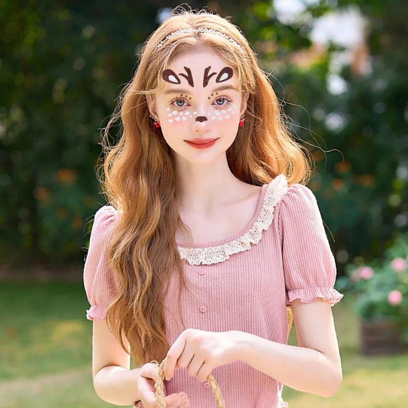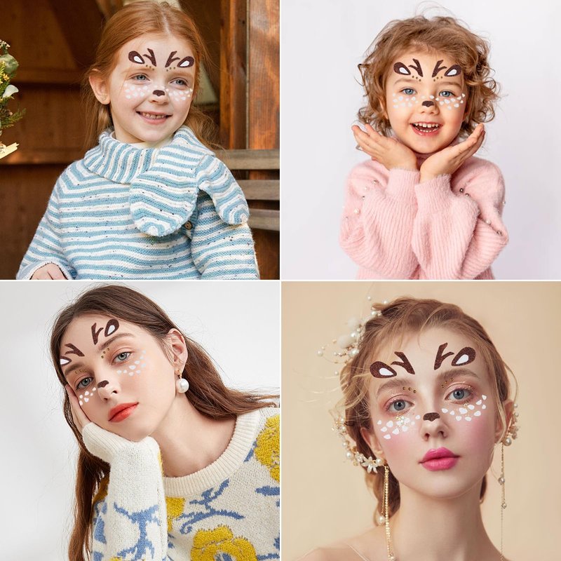- Cute Christmas Reindeer Face Stickers! This cute Christmas reindeer face sticker features a delicate reindeer face design that will make you transform into the cutest Christmas reindeer in an instant. Whether you're a child, a woman, or an adult, wearing this face sticker at Christmas parties and cosplay events will make a difference.