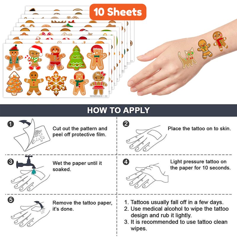 - Including ten sheets tattoos with various styles, sufficient in quantities and colors to meet your daily requirement of using and sharing. You guys can easily use this set of Gingerbread man temporary tattoos and take unique photos to make fond memories.