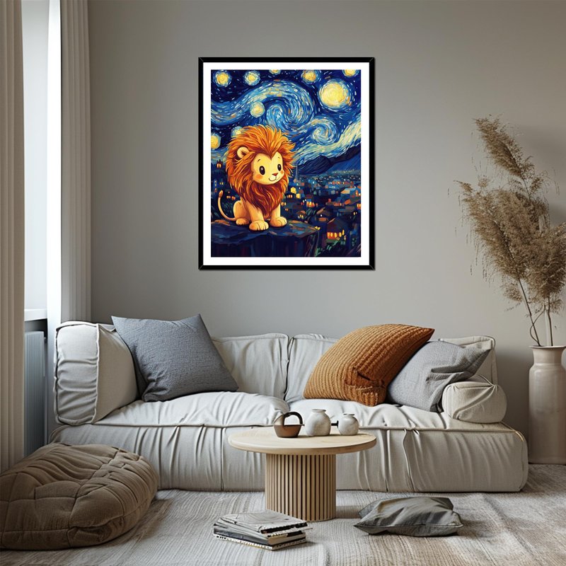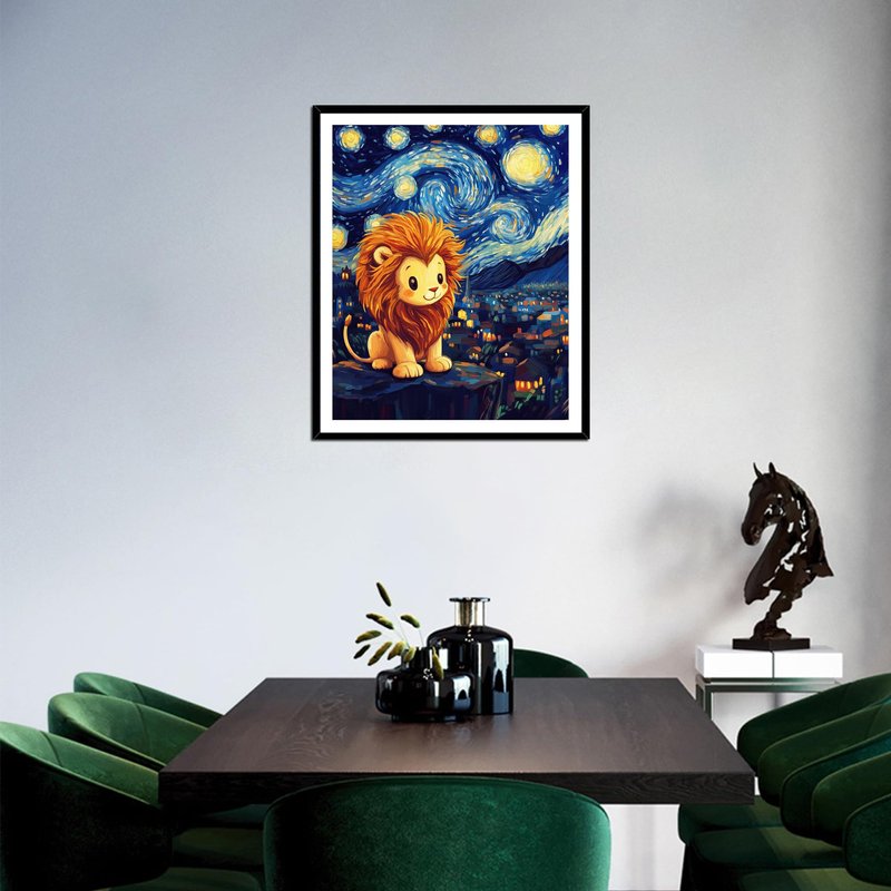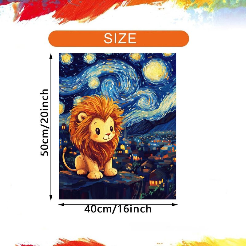 Cute Lion Acrylic Paints for Home Wall Decor, Starry Night Landscape Oil Painting Gift Acrylic Paint for Beginner, Animal DIY Painting by Numbers for Adults(16×20inch, No Frame)