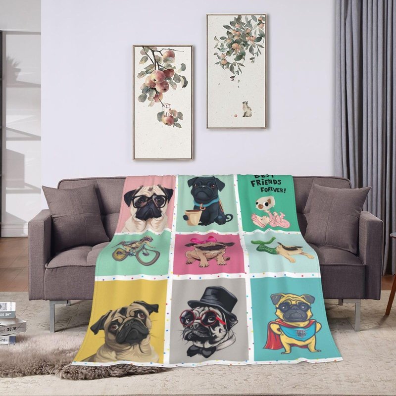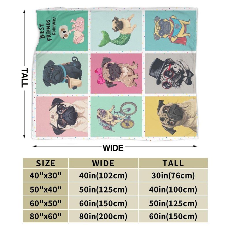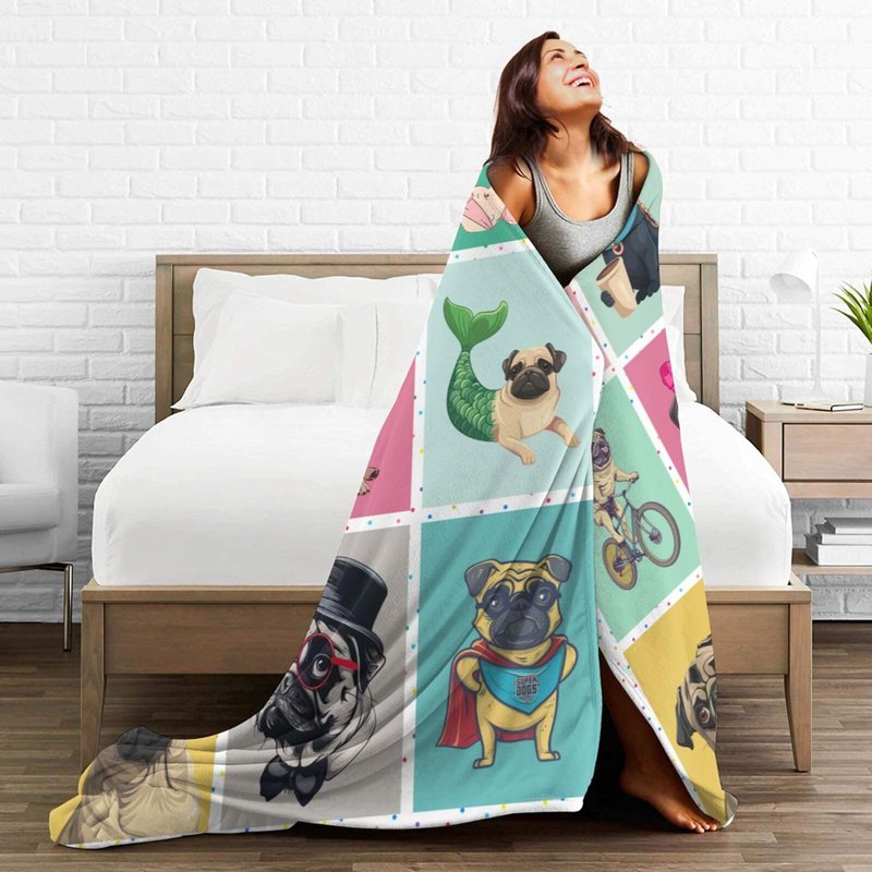 Cute Pug Blanket Cartoon Dog Fleece Throw Blanket Toddler Nursery Fuzzy Plush Super Soft Cozy Warm Pug Stuffed Animal Decor Blanket Gifts for Boys Girls Kids Adult Men Women 50"X40"