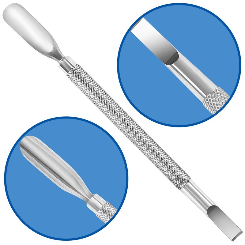 - Nail Cuticle Pusher: Use the flat end of the cuticle tools to gently push back the cuticles on your nails. Use the cuticle remover tool to neaten cuticles. For best results, purchase BlueOrhids cuticle nipper for trimming.