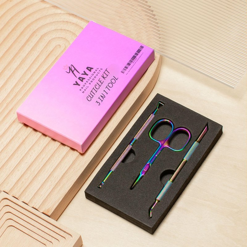 Cuticle Scissors with Cuticle Pushers, Extra Fine Curved Blade, 3in1 Professional Cuticle Tools Set, Nail Cuticle Trimmer Set, Manicure Kit, Pedicure Kit, Yaya Nails Cuticle Tool Kit (Rainbow)