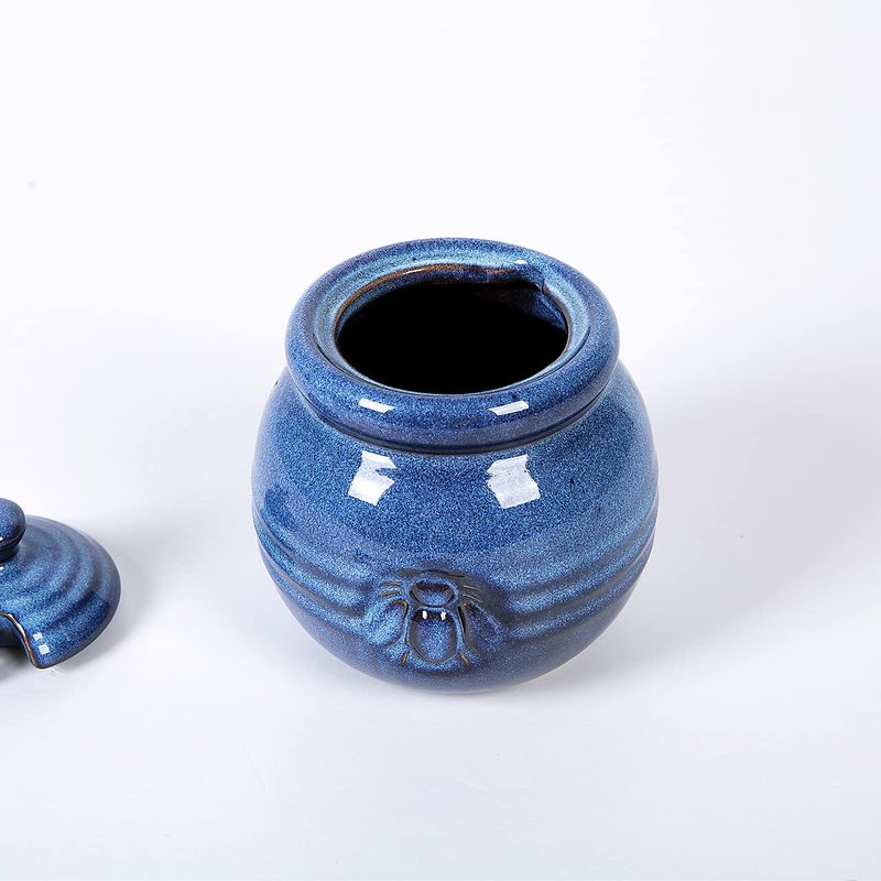 Cutiset Ceramic Honey Pot with Lid and Dipper, 20oz rustic Honey Jar (Blue)