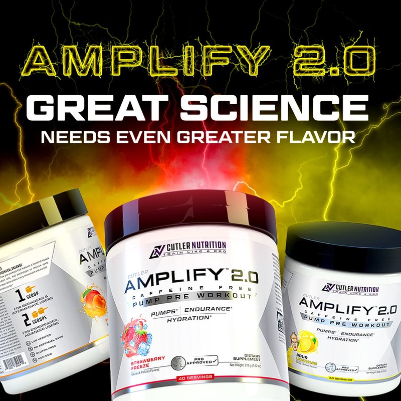 Introducing Amplify 2.0, the ultimate stim-free pre-workout powder from Cutler Nutrition designed to take your workouts to the next level without the jitters or crash from caffeine. Packed with a potent blend of ingredients, this pre-workout powder is ideal for beginners and pros alike who want to take their performance to the next level. Amplify 2.0 contains a unique blend of electrolytes, NO3-T arginine, and L-citrulline, which work together to hydrate muscles and act as a nitric oxide booster to give you a lean shredded look. This helps to increase nutrient flow, providing a surge of energy to power through your workouts and get that visceral appearance. Whether you're lifting weights, running, or doing any other type of exercise, Amplify 2.0 can help you push through your limits. Our pre-workout powder is also stim-free, meaning it doesn't contain any caffeine that can cause jitters or crashes. Instead, Amplify 2.0 focuses on delivering sustained energy and focus throughout your workout through proper hydration, allowing you to maintain your intensity for longer periods of time. Amplify 2.0 is just one of many cutting edge supplements from one of the most trusted names in the workout community - Cutler Nutrition, a brand founded by Jay Cutler, one of the most successful bodybuilders of all time. With years of experience in the fitness industry, Cutler Nutrition understands what it takes to achieve peak performance, and has used that knowledge to create a pre-workout powder that delivers real results.