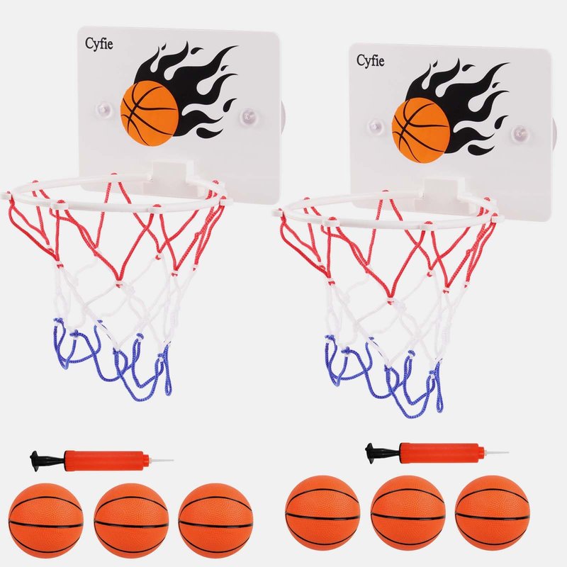 - The basketball hoop toys includes 2 pack basketball hoop, 4 balls, and 2 air pump. you can shoot hoops and indulge in slam dunks anywhere.