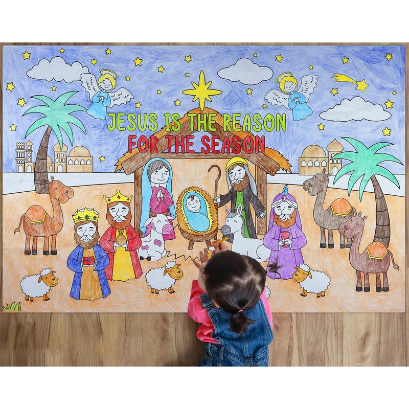 - 【Giant Nativity Scene Coloring Poster for Kids】: This special xmas big jumbo coloring nativity poster for kids features a distinctive nativity scene Holy Night with classic figures including Jesus, angels, Mary, cows, and sheep. Emphasizing the religious significance of Christmas, it also bears the printed phrase "Jesus is the reason for the season," serving as a powerful reminder during this festive time of year. Perfect for home classroom Christmas Party Supplies favors.