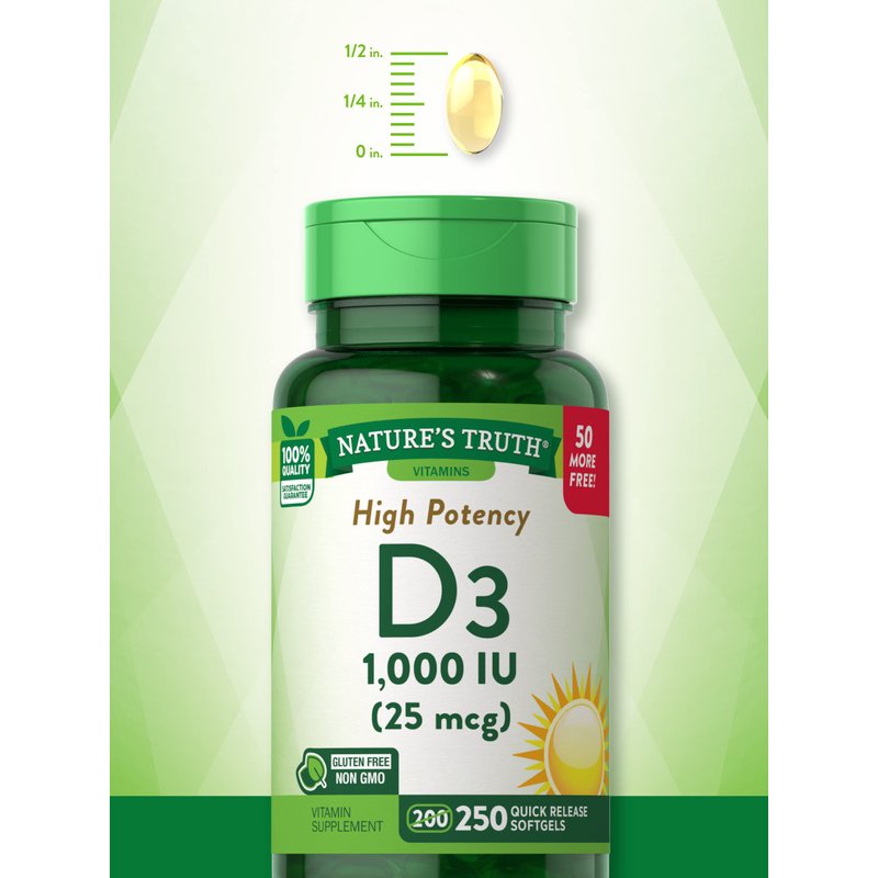 D3 1000 IU | 250 Softgels | Essential Vitamin D | Non-GMO & Gluten Free High Potency Supplement | by Nature's Truth