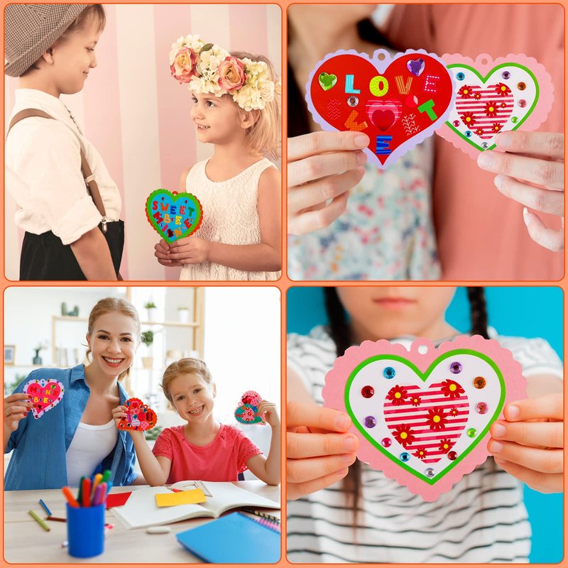 D4DREAM Valentines Day Heart Stickers Craft Kit for Kids 24pcs DIY Heart Ornaments Heart Valentine Craft Kits for Wedding Adults Kids Valentine Gift Exchange Classroom Activity Art Project