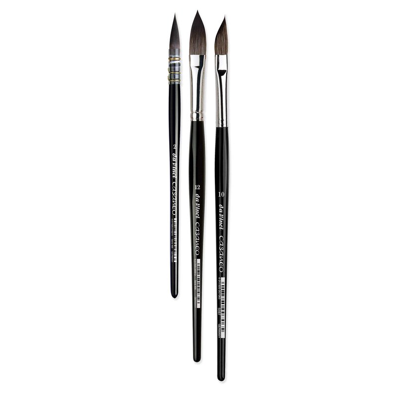da Vinci Brushes 4250DV Watercolor Brush Set, Quill Size 2, Slant Size 10, Oval Size 12, Black, 3 Each