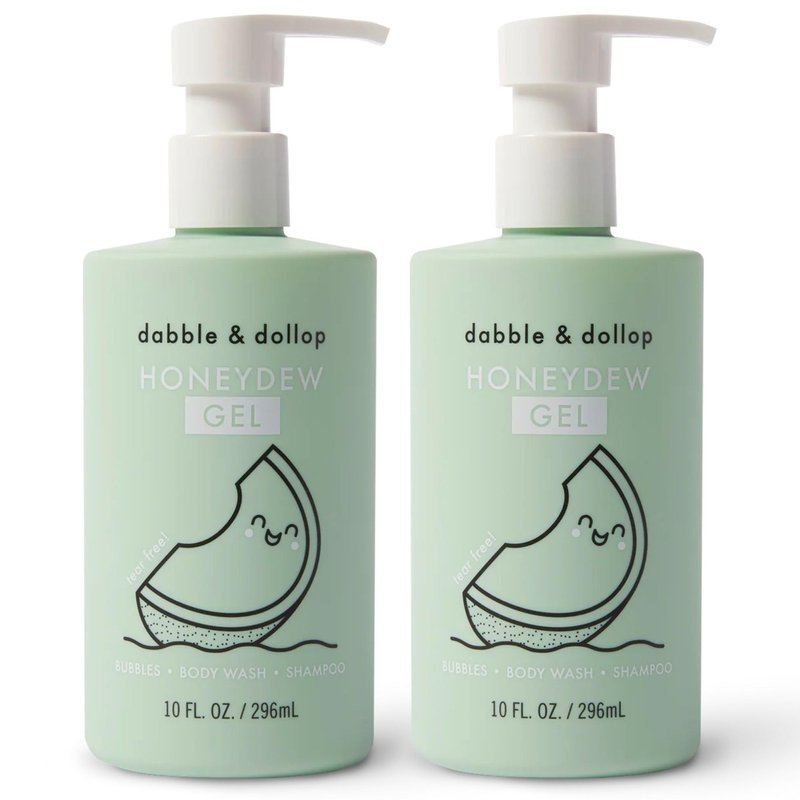 Dabble & Dollop Honeydew Melon Body Wash & Shampoo - 3 in 1 Natural Bubble Bath for Kids, USA-Made, Paraben & Sulfate Free, Vegan, Gluten-Free, Tear-Free (10oz, Pack of 2)